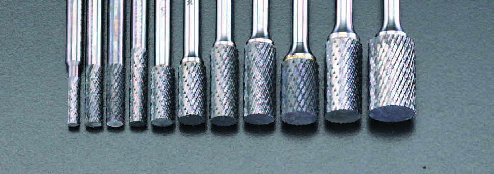 | 【使用上の注意】 1.超硬バーが最高の能力を発揮する為には、切削物に対して最適な回転数に 調整する事が必要です。 2.硬い材質のものほど、低い回転数で使用してください。 3.サイズの小さい超硬バーほど高い回転数で使用してください。 4.使用の際は、絶えず動かし、軽い圧力を加えてください。 5.最適回転数を下回る回転数での使用は刃の欠損につながります。 6.使い古した工具やコレットを使用すると、刃の欠損につながります。 7.超硬バーは先端長の1/3以上を沈めないでください。 8.回転数が速すぎると刃の摩耗を早めます。 |