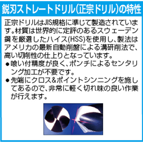 | 先端ウェブに特殊なクロス&ポイントシンニングを施してあるので喰い込みが良く進行するので、すばらしい切れ味が得られます。 | |||