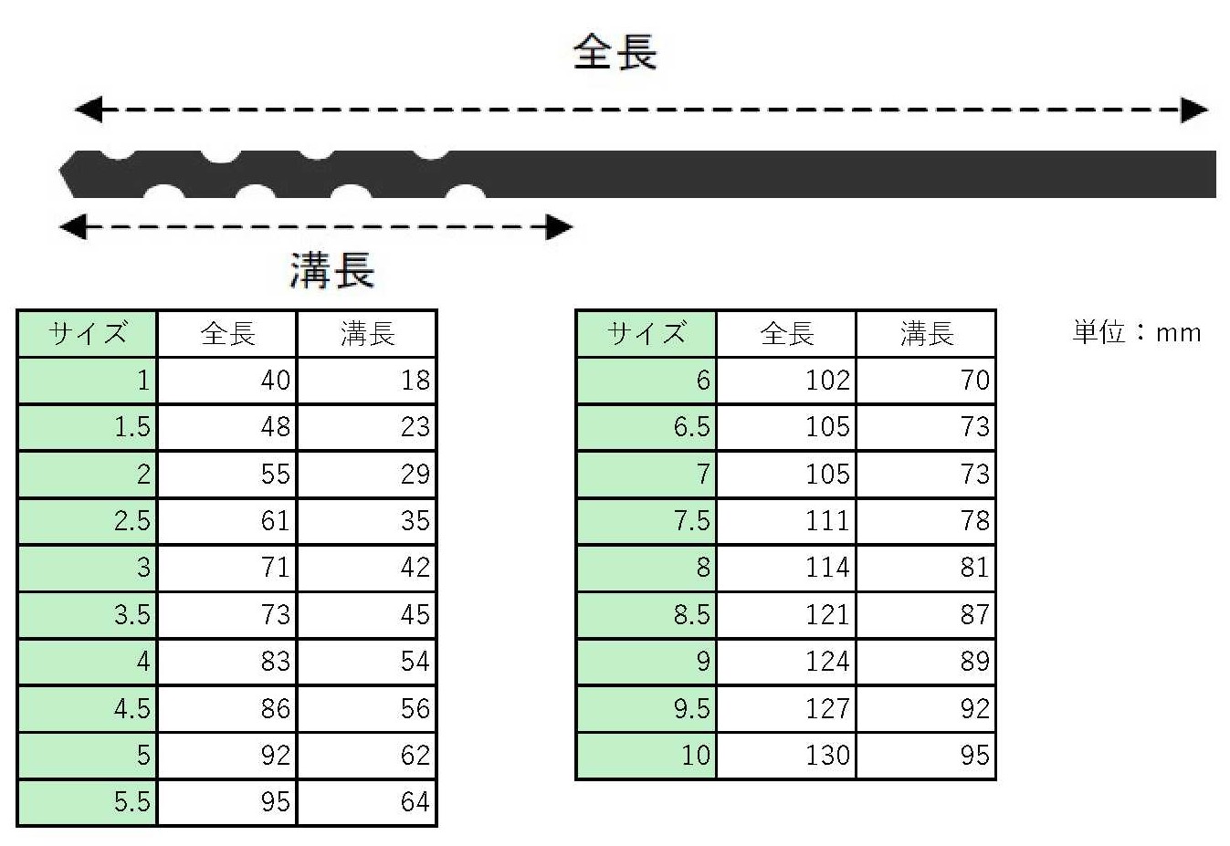 | 全長 | 40~130mm | 溝長 | 18~95mm |
