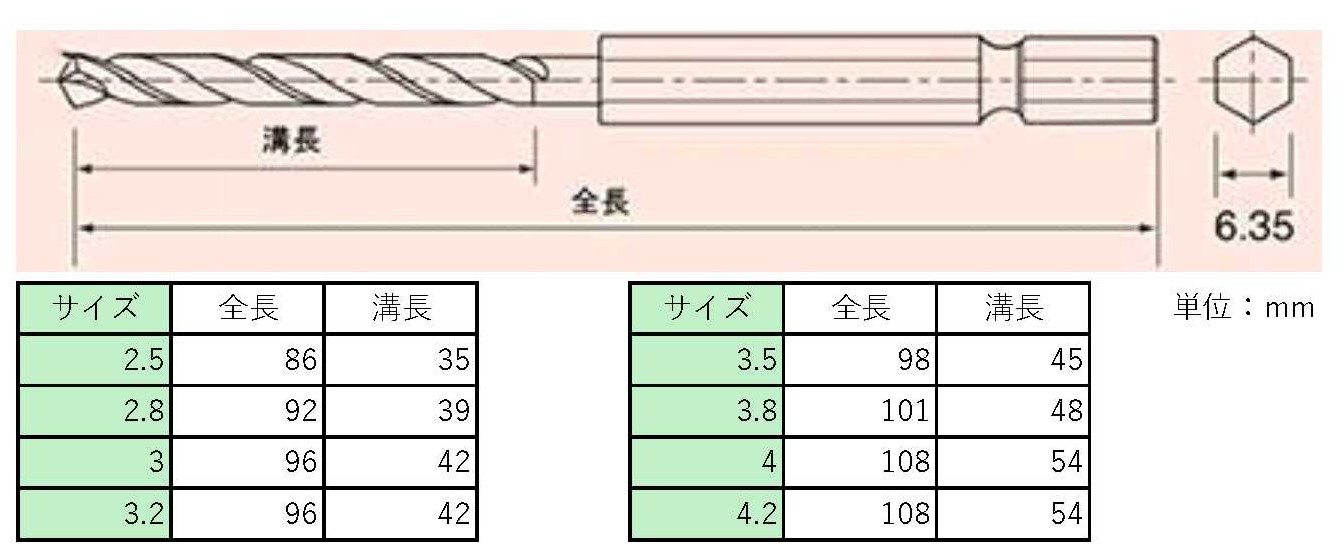 | 六角シャンク | 6.35mm | 先端角 | 118° |