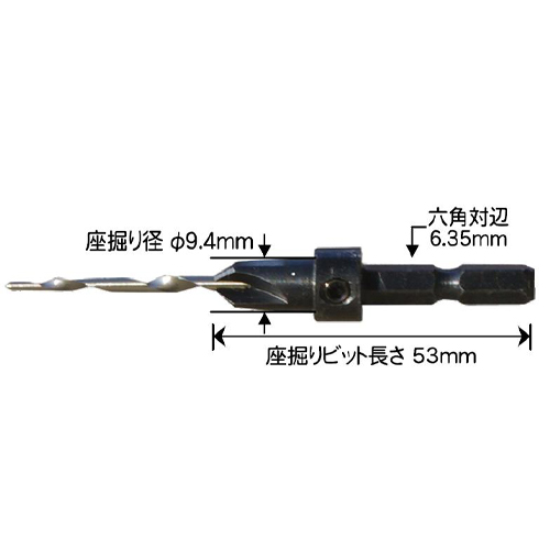 | 座掘りビット長 | 53mm | 座掘り径 | φ9.4mm |