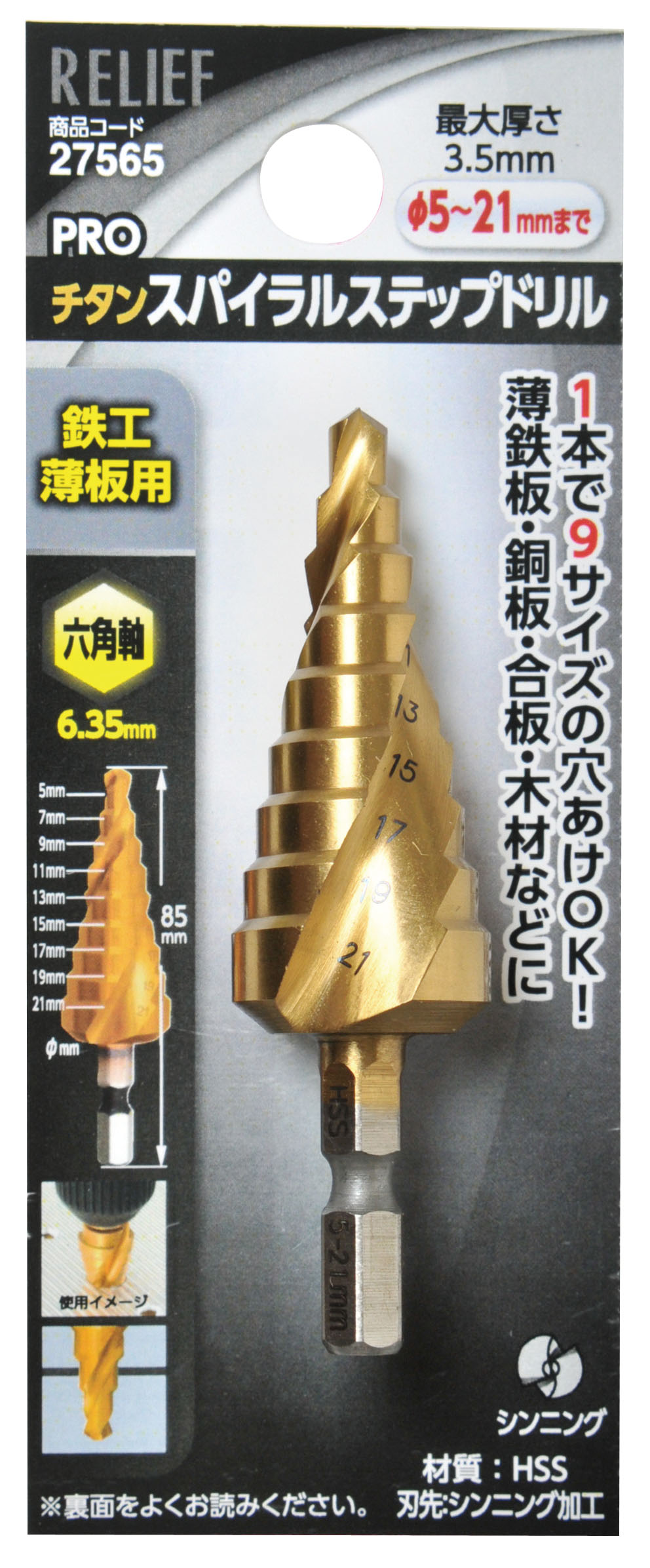 品名 : 5-21㎜ ステップドリル(1/4"六角軸・HSS)