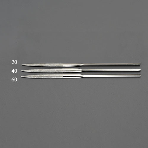 | ダイヤモンドやすりの上手な使い方 A.できるだけ湿式研削を行ってください。乾式よりも切れ味がよく長持ちします。 B.目づまりした場合は歯ブラシでよく洗浄してください。 C.特に目づまりの著しい時はダイヤの部分を硝酸溶液に数秒浸し、水で充分洗ってください。 必要以上に長く浸しますとかえって逆効果をまねき、精度も落ち、寿命も縮みますのでご注意ください。 超硬質合金、セラミックス・サーメット・ガラス等には使用しないでください。 |