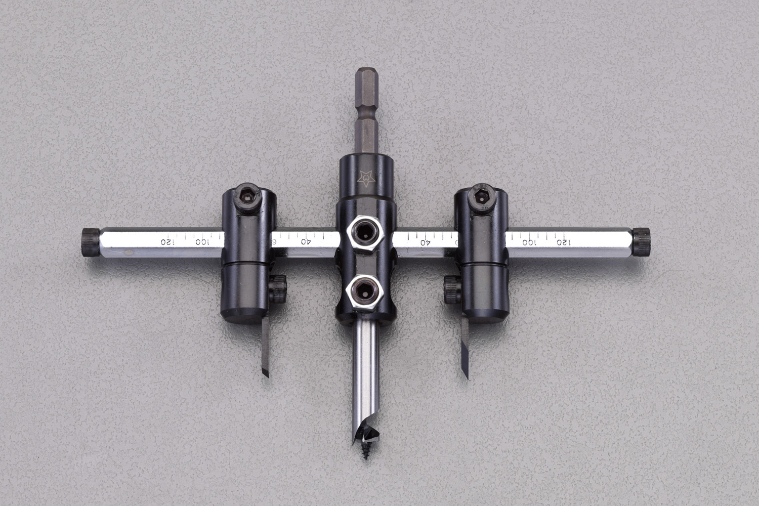 | 一台で30mm~120mmまでの穴あけが可能な、充電ドリル用自在錐 | |||