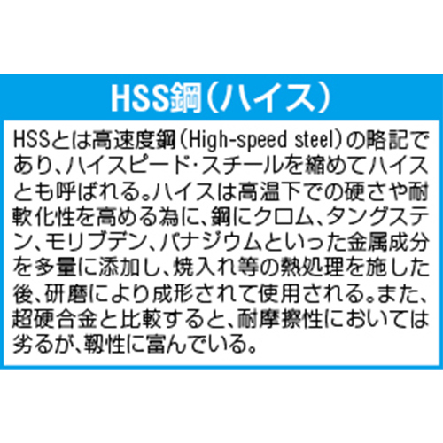 | 材質 | HSS(ハイス) | 羽数 | 3枚 |
