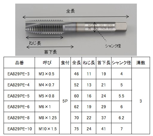 | 首下長 | 21mm | 材質 | 高バナジウムハイス(HSSE) |