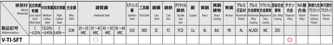 | 対応被削材 | チタン合金、調質鋼(35~45HRC) | ||