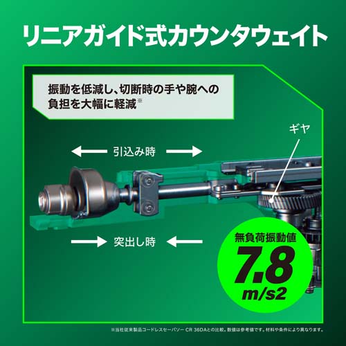 | リニアガイド式カウンタウェイトで、振動を低減し、切断時の手や腕への負担を大幅に軽減。 | |||