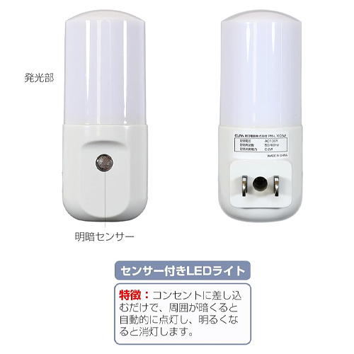 品名 : AC100V/0.2W LEDセンサーライト(明暗センサー式/アンバー)