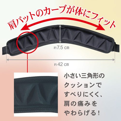 低反発ウレタンのパットにより、肩への負担が大幅に軽減 | |||