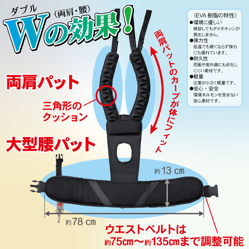 サイズ | パッド:780×130mm | 腰ベルト調整範囲 | 75~135cm |