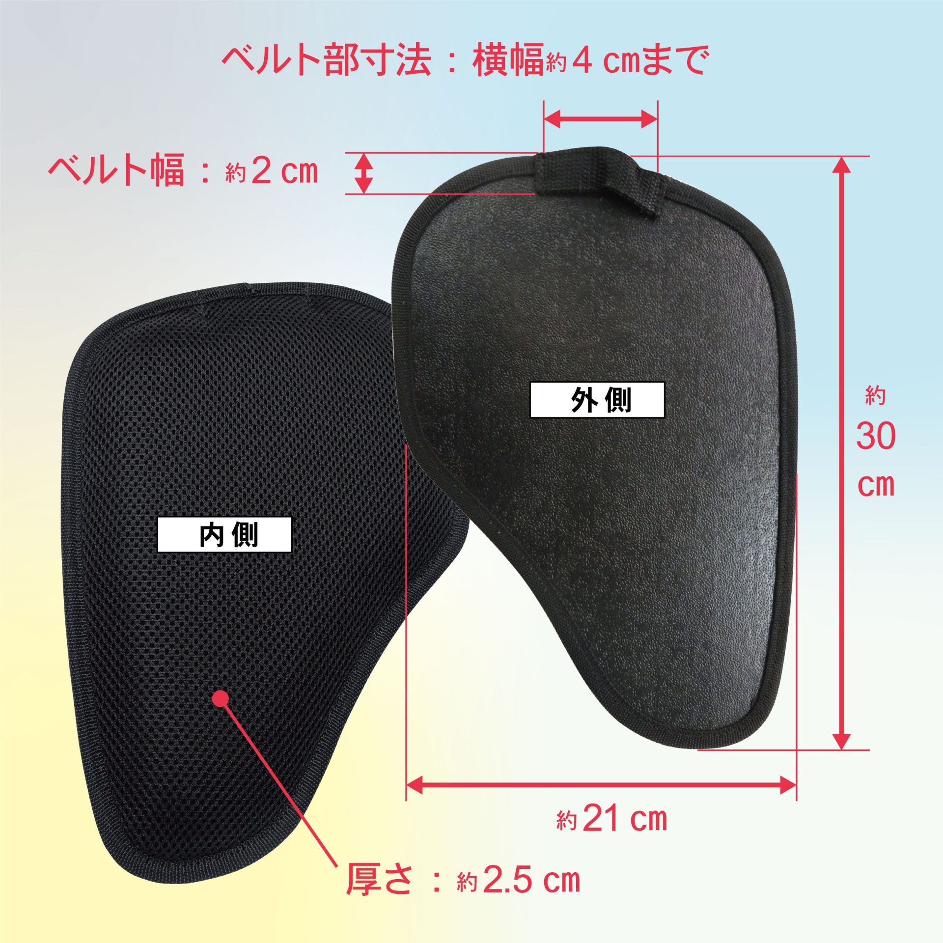通気性のよいメッシュ生地及びポリエチレン板を採用 |