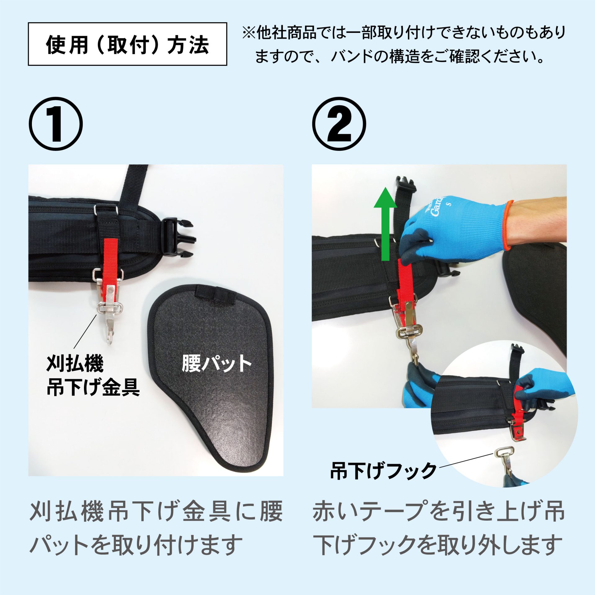 刈払機肩掛けバンド・ベルトに取り付けてご使用下さい。 | |||