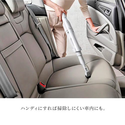 | コードレスで持ち運びが簡単なので、階段、ソファーやベッドの下、車の中、棚のすき間など家中どこでもお掃除ができます。 | |||