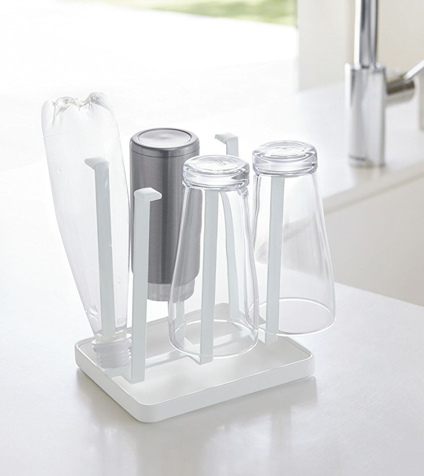 | 滑り止めキャップ付きで、グラスをキズつけず、立てて干すことができます。 | |||
