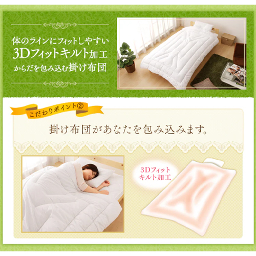 体のラインにフィットしやすい3Dフィットキルト加工の掛布団 | |||