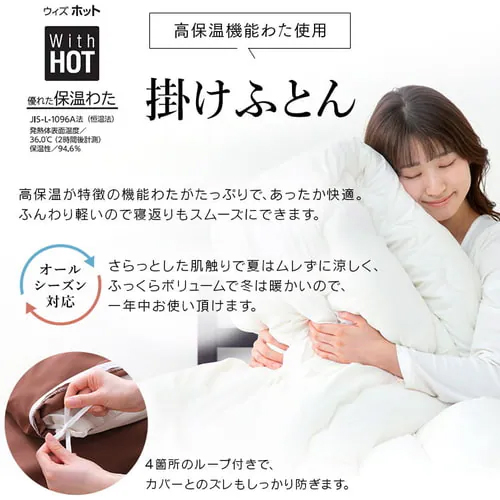掛布団には保温性の高いわたを使用。いつでも快適な寝心地です。 | |||
