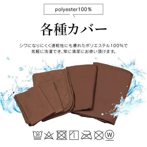 ◆ ポリエステル100%の各種カバー シワになりにくく速乾性にも優れたポリエステル100%で気軽に洗濯でき、常に清潔にお使い頂けます。 |