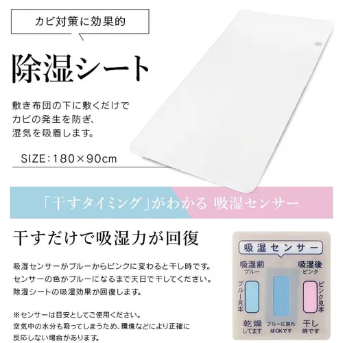 布団の下に敷くだけで湿気を吸湿し、カビ対策に最適な除湿シート付き。干して乾燥させることで、くり返し使用できます。 | |||