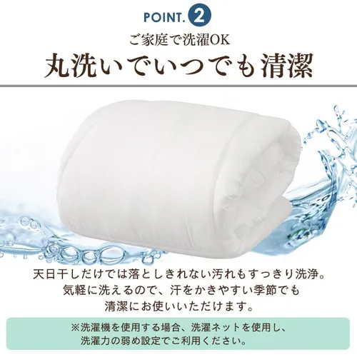自宅で洗えるので、いつでも清潔にお使いいただけます。※洗濯機を使用する場合、洗濯ネットを使用し、洗濯力の弱め設定でご利用ください。 | |||