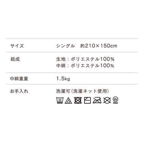中綿重量 | 1.5㎏ | 目付け(約) | 115g/㎡ |