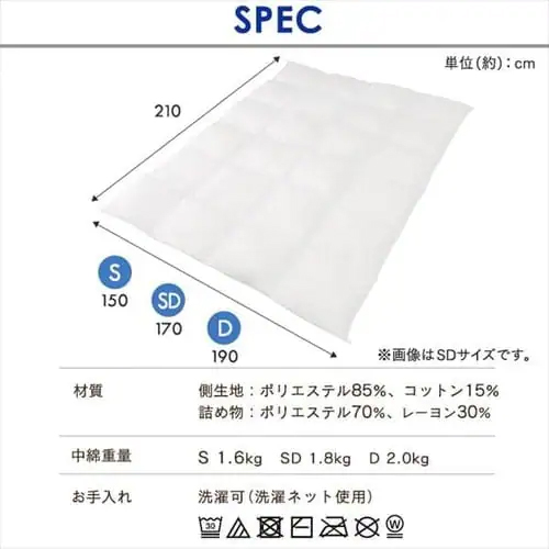 中綿重量 | 1.6㎏ | 目付け(約) | 100g/㎡ |