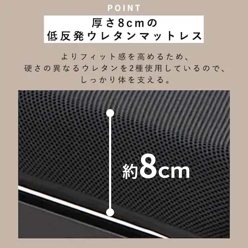 | 厚さ約8cm、体圧分散性に優れた低反発ウレタンマットレス。 | |||