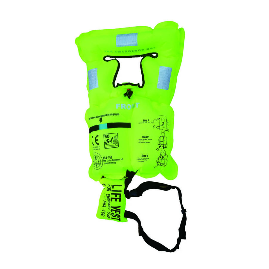| 浮輪のように呼気で膨らませるタイプのライフジャケットです。 | |||