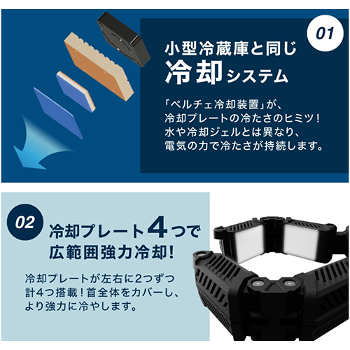 | 4つのペルチェ冷却プレートで首まわりを広範囲強力冷却 | |||