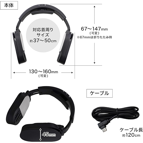 | 電源 | USB 5V 2.4A モバイルバッテリー(20,000mAh) | 温度 | 強モード:外気温より-10~-17℃ 弱モード:外気温より-5~-9℃ ゆらぎモード:外気温より-5~-13℃ ※外気温35℃で測定時。使用環境により異なる場合がございます。 |