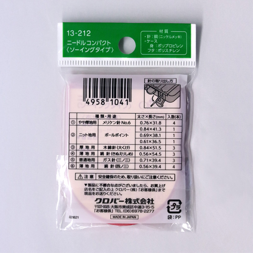 材質 | 針:鋼(ニッケルメッキ) ケース:ポリプロピレン フタ:ポリスチレン |