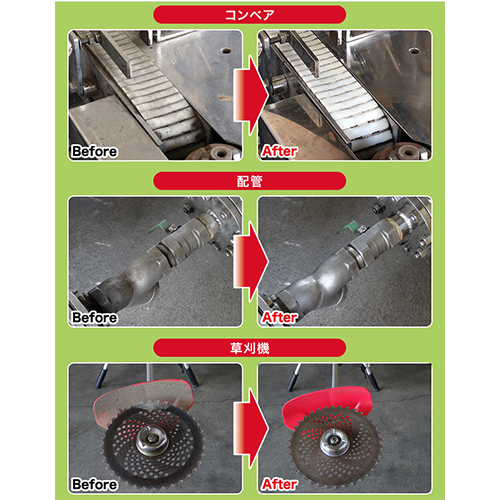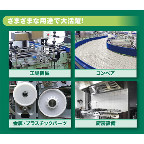 | ●機械部品、工具、農機具、電気製品、自転車、自動車、オートバイなどの金属・プラスチックパーツ類の洗浄・脱脂に ●厨房回り・壁・合成皮革などの油・皮脂・ヤニ汚れの清掃 |
