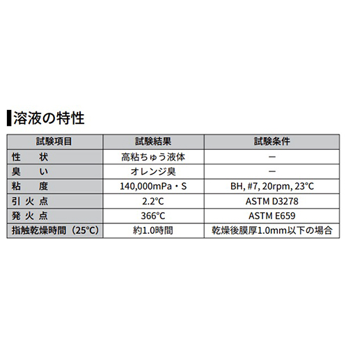 | 耐水性、耐透水性、電気絶縁性に優れたゴム系高分子材料を溶剤に溶解したコーティング材料です。 | |||