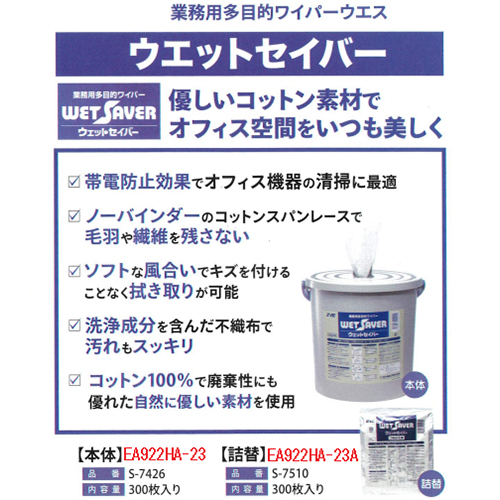 | 本体 | EA922HA-23 : 180x300mm ウェットタオル(300枚) |