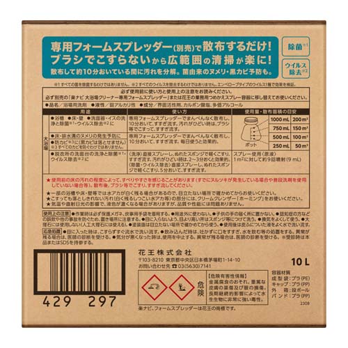 | メーカー | 花王プロフェショナル | 商品名 | 楽ナビ 大浴場クリーナー 10L 業務用 |