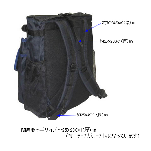 | 両手が使えて動きやすいリュックタイプ、簡易取手付 | |||