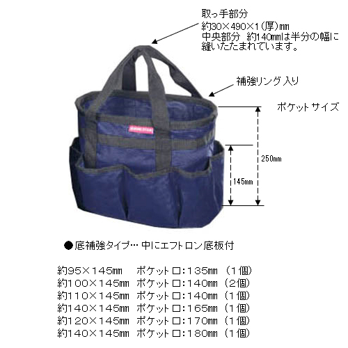 | 底補強タイプ | 中にエフトロン底板付 | ポケット数 | 7個 |