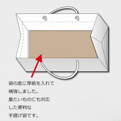 | 袋本体の穴に通した手紐を結んで取り付けたタイプの手提げ紙袋です。 | |||