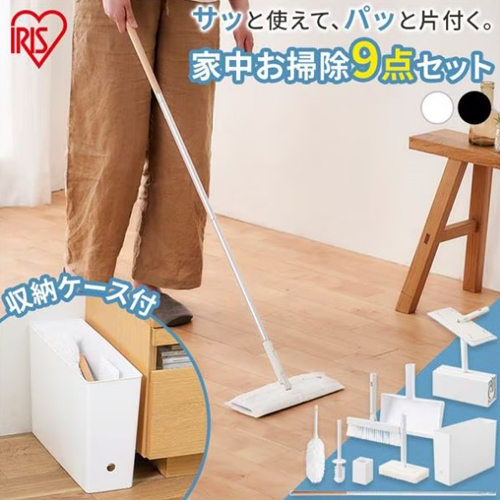 | カラー | ホワイト | セット内容 | 収納ボックス、着脱式柄、フローリングワイパー、粘着ローラー、ハンディモップ、ホウキ、チリトリ、バススポンジ、トイレブラシ |