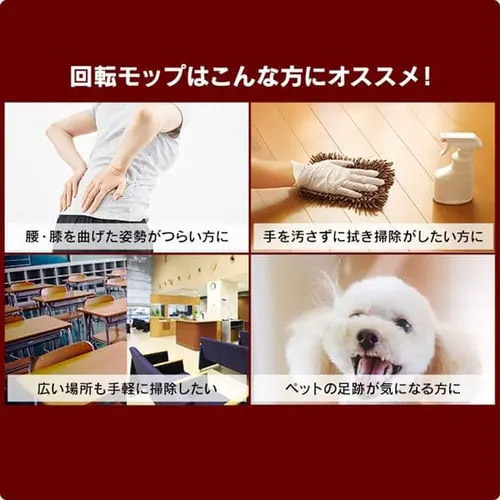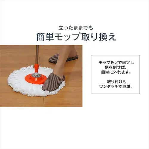 | マイクロファイバーモップで、水拭きでもから拭きでも、しっかり汚れをキャッチ。 | |||