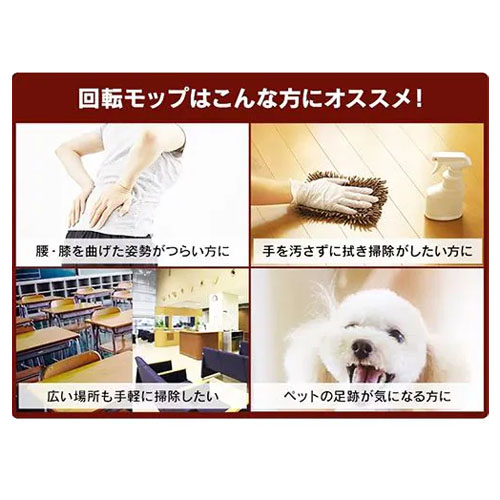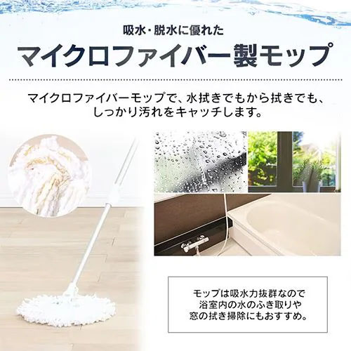 | マイクロファイバーモップで、水拭きでもから拭きでも、しっかり汚れをキャッチします。 | |||