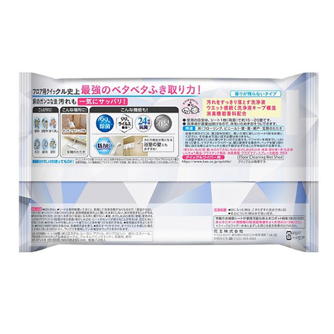 | メーカー | 花王 | 商品名 | クイックルワイパー 立体吸着ウエットシート ストロング 香りが残らないタイプ |