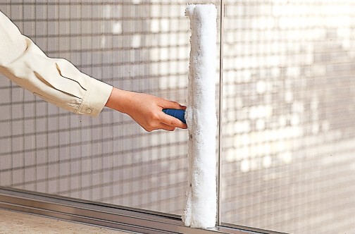 微細な起毛布でガラス表面に水や洗剤の希釈液をムラなく広げられます