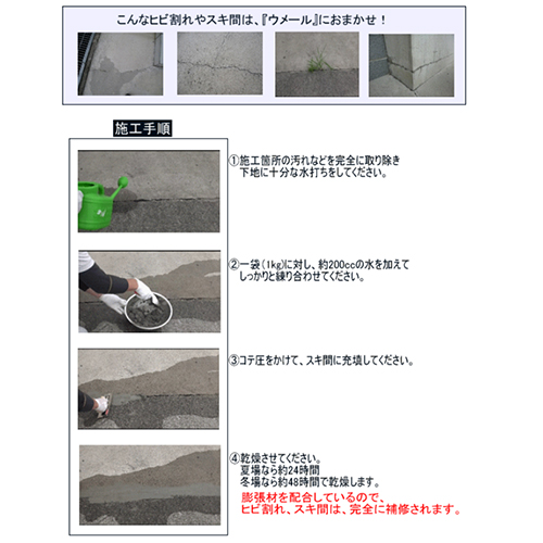 | 膨張剤配合により、施行後スキ間や亀裂などは完全に補修されます。 | |||