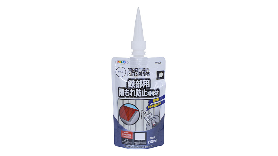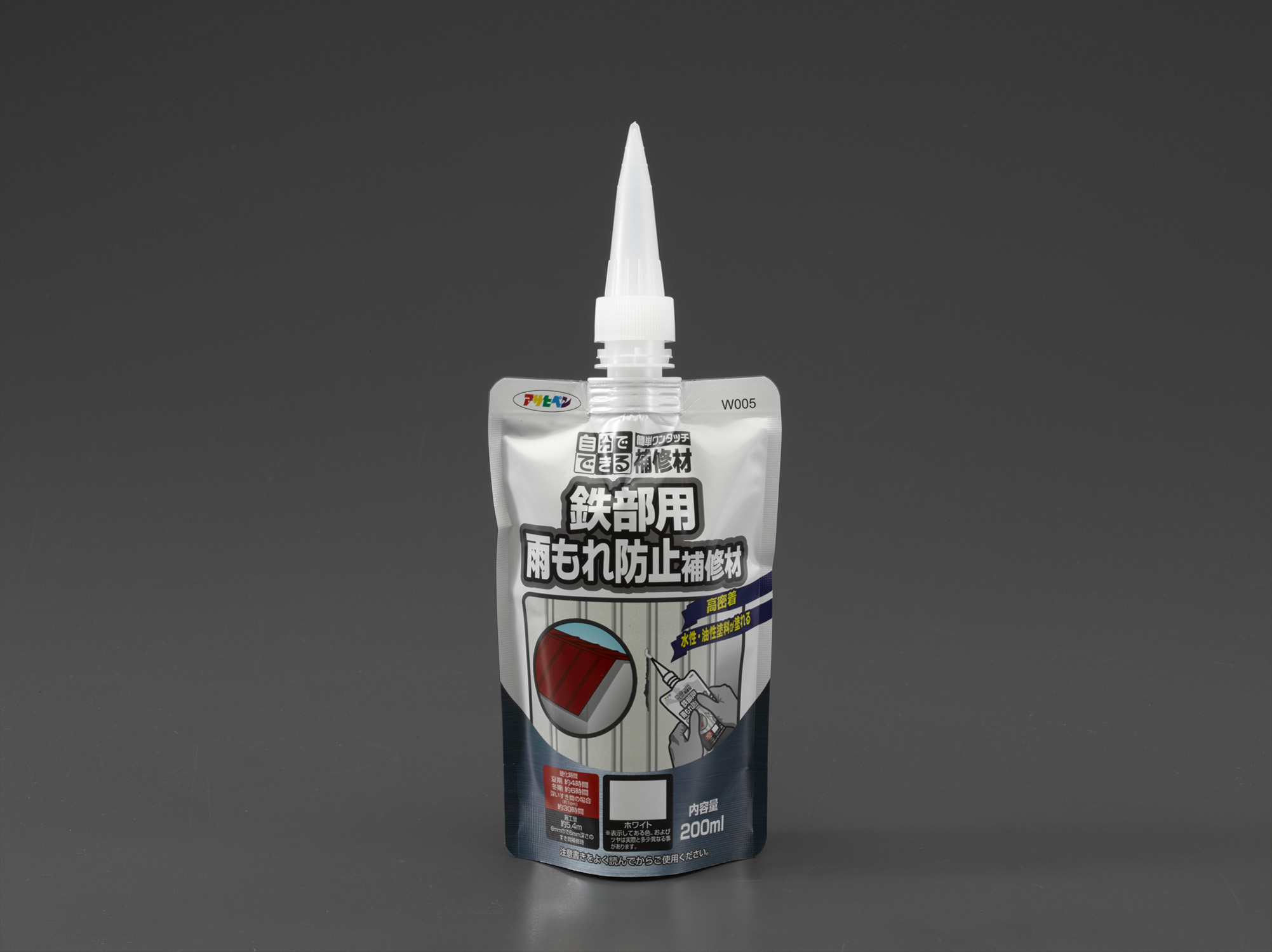 | 用途 | 屋外の鉄部、トタン、ステンレスなどのひび割れや穴の補修。鉄部と外壁(木部、スレート、モルタル、コンクリートなど)との接合部分の隙間、鉄製建具と外壁との隙間の補修。 | 内容量 | 200ml |