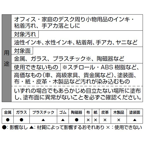 | 手アカ、粘着・インキ汚れを落とします。 | |||