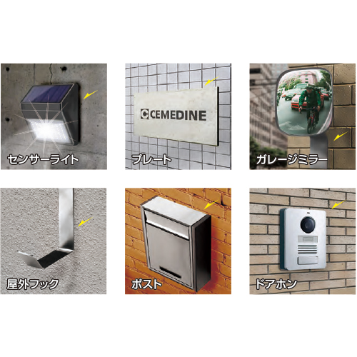 | 外壁に穴あけ不要で、表札やセンサーライトなどの設置・固定が可能です。 | |||