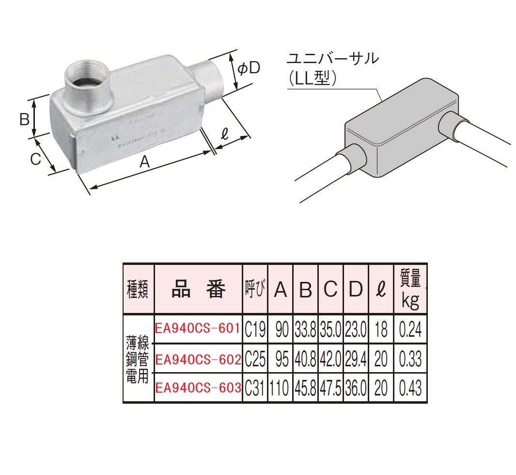 EA940CS-602 C25 ユニバーサル(L形2方出/薄鋼用) |