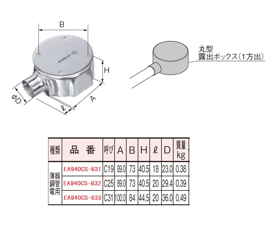 EA940CS-633 C31 丸形露出ボックス(1方出/薄鋼用) |