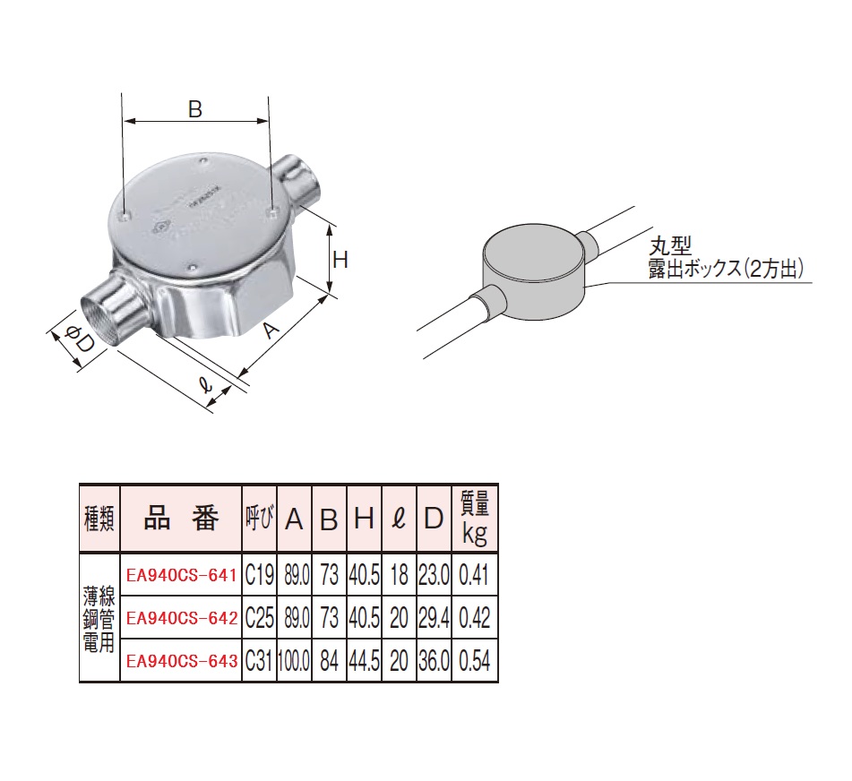 EA940CS-642 C25 丸形露出ボックス(直線2方出/薄鋼用) |